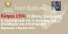 Τελετή Βράβευσης των μαθητών και μαθητριών που διακρίθηκαν στον Παγκύπριο Μαθητικό Διαγωνισμό «Κύπρος 1974: Ο βίαιος ξεριζωμός, η προσφυγιά και ο αγώνας για ελευθερία και επιστροφή», Παρασκευή, 04 Απριλίου 2025